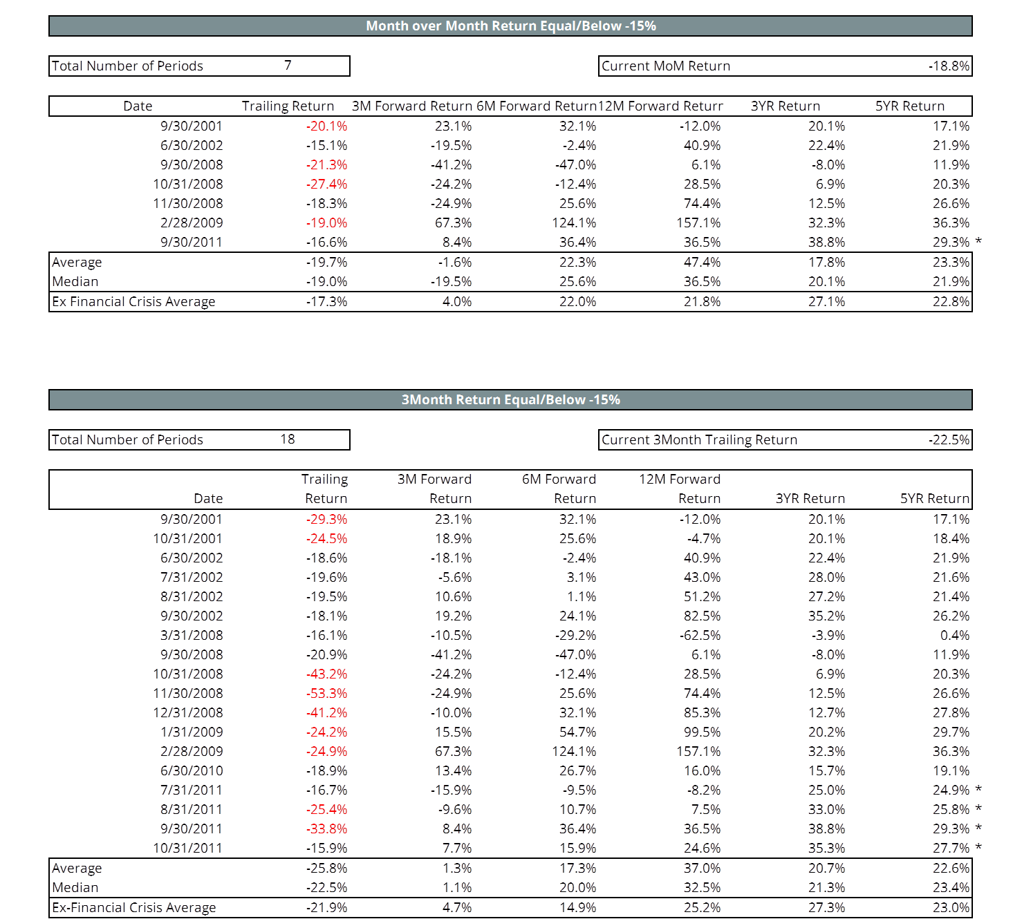 These examples are actually some of the ones where there’s been the most “disappointment,” which is not surprising given they are the biggest detractors. Still, it seems like Mr. Market is on a depressive bender seeing only darkness where there is actually light. More broadly, results are even more encouraging. Companies we speak to definitely aren’t seeing the weakness projected by the market. Historical precedent says times like these usually provide great buying opportunities.